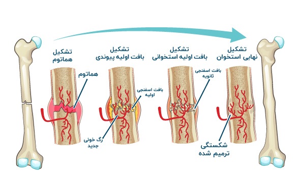 سخت شدن: کلسیم و فسفر روی استخوان جدید مینشیند و آن را محکم میکند.