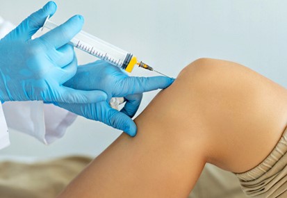 - ضدعفونی و بیحسی: محل تزریق (زانوی شما) به دقت ضدعفونی شده و ممکن است برای کاهش درد از بیحسی موضعی استفاده شود.
